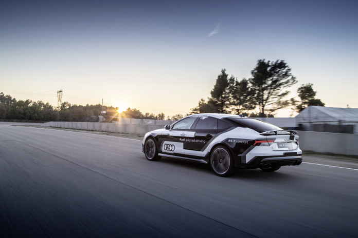 The Audi RS 7 piloted driving concept has once again driven to record times – autonomously and without any interventions by the driver. At the challenging FAST Parcmotor race track near Barcelona in Spain, Audi demonstrated its technological competence in piloted driving. Passengers were international journalists who had an opportunity to experience the latest generation of the high-powered, four-door sport coupe under race conditions.